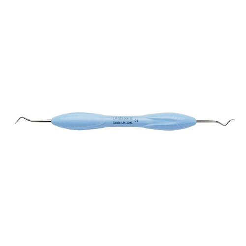 Supragingivaalisen hammaskiven poistoon. Voimakkaasti taivutettu varsi ja siro työosa. Vaaleansininen ErgoSense-varsi.