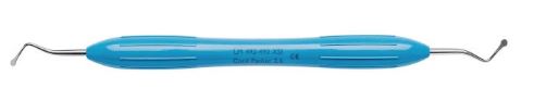 Kärkitaivutus helpottaa pääsyä hampaan ympäri ja mahdollistaa ienlangan pakkaamisen pystysuorin liikkein. Kärkien leveys 2,6 mm. Sininen ErgoMax- varsi.