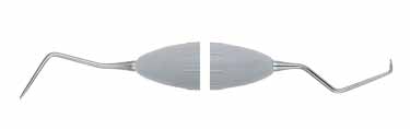 Keskitetty kärki (17C), pidennetty alavarsi ja back-action-kärki. Erityisesti takimmaisten hampaiden distaalipinnoille. Harmaa ErgoNorm- varsi.